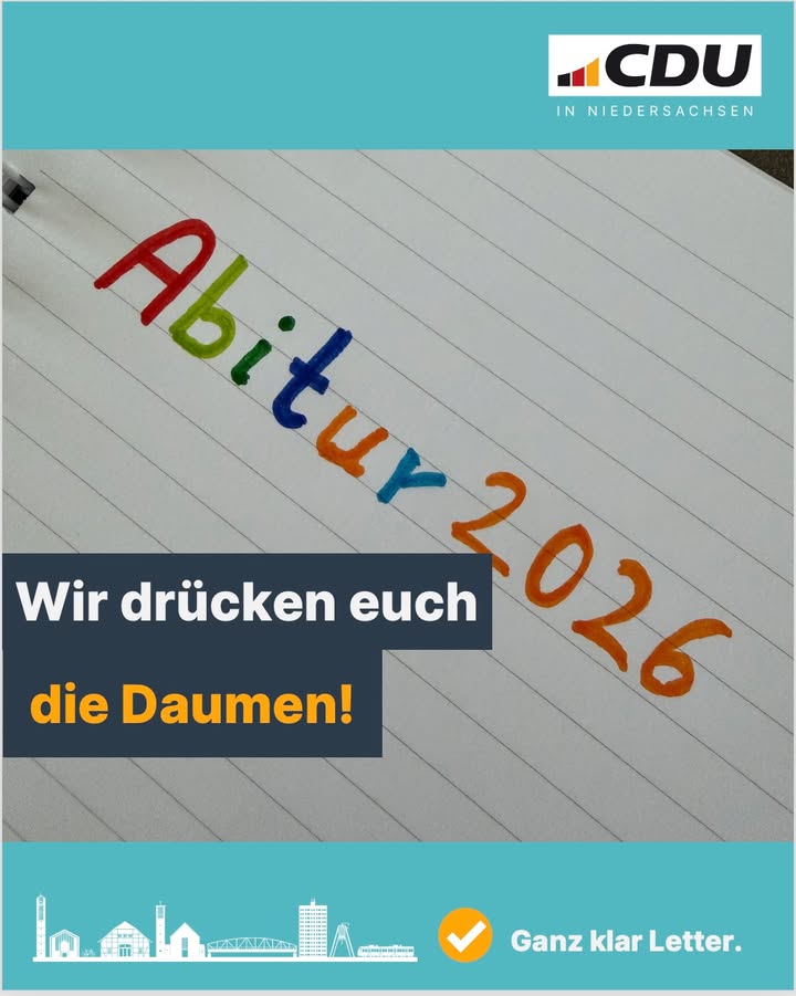 Mit dem 10.04.2026 beginnt die heiße Phase aller Abiturientinnen und Abiturienten. In den den nächsten Tagen 📆 werden alle Abitur-Prüfungen geschrieben 📝.Wir drücken euch für die kommenden Wochen die Daumen!Die ersten Prüfungen werden in Geschichte 🏰, Spanisch/Griechisch, Sport 🤾♂️, Informatik 👩💻, Kunst ?🎨 und Erdkunde 🗺️ geschrieben. In der 2. Woche geht es dann mit Biologie ?, Physik 👩🔬 und Chemie ⚗️ weiter. Gefolgt in der 3. Woche mit Latein, Deutsch 📔, Politik-Wirtschaft und Englisch 💷.In der letzten Woche kommen dann noch Musik 🎼, Religion/Werte und Normen, Mathe ? und Französisch dran.?Ihr habt viel gelernt und geübt. Ihr schafft das!!! #cduletter #seelze #abitur #schule #gymnasium #oberstufe #abitur2026